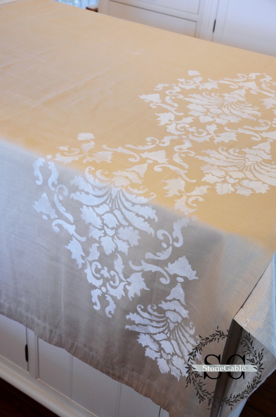 Because I did not want an all-over pattern I stenciled in three rows. Left ... then right... then an accent down the center.